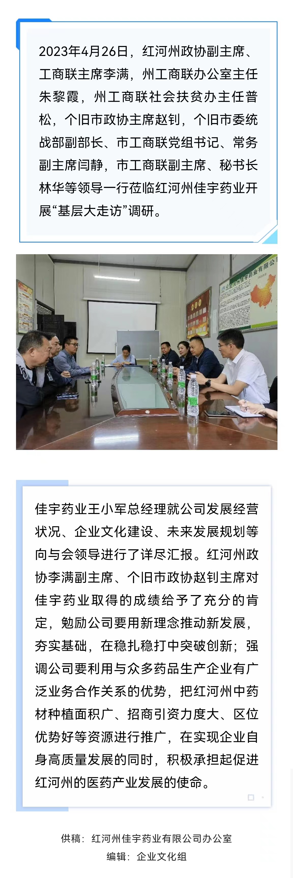 红河州政协、工商联赴红河州佳宇药业开展“基层大走访”调研活动